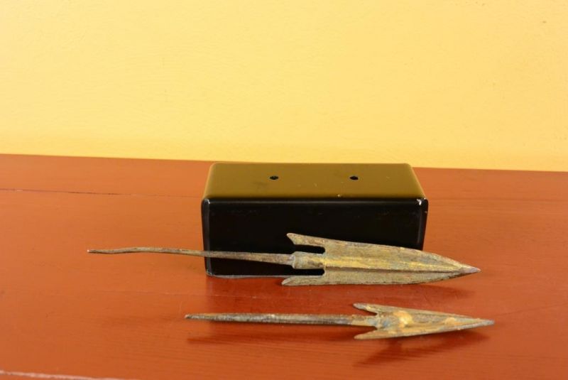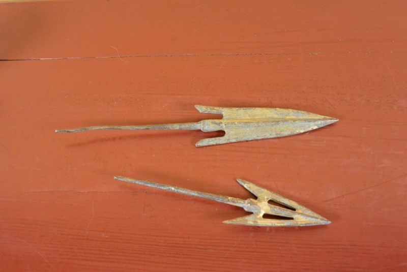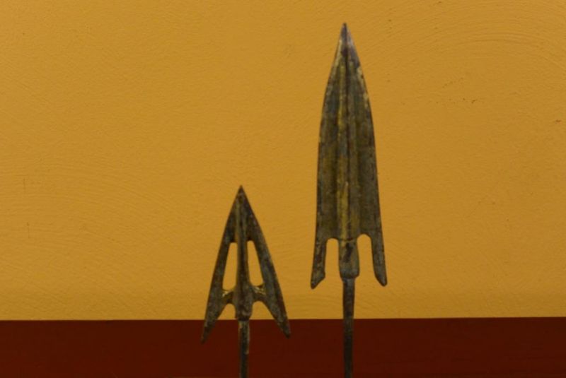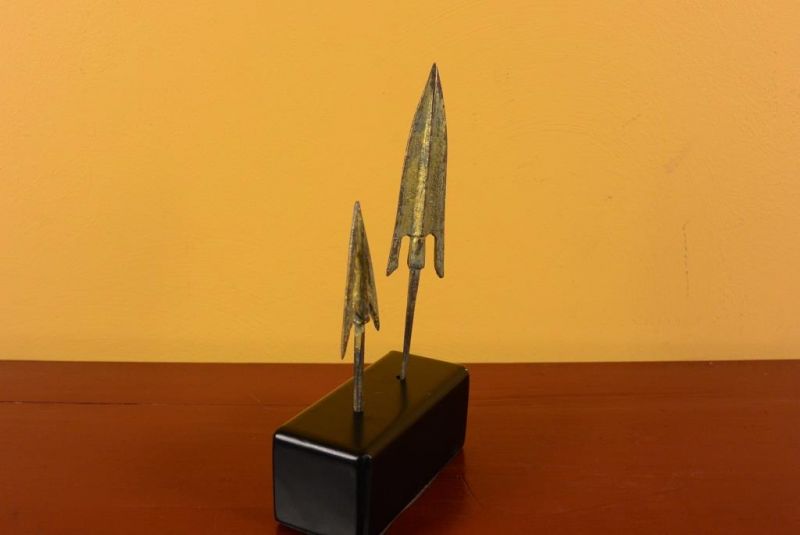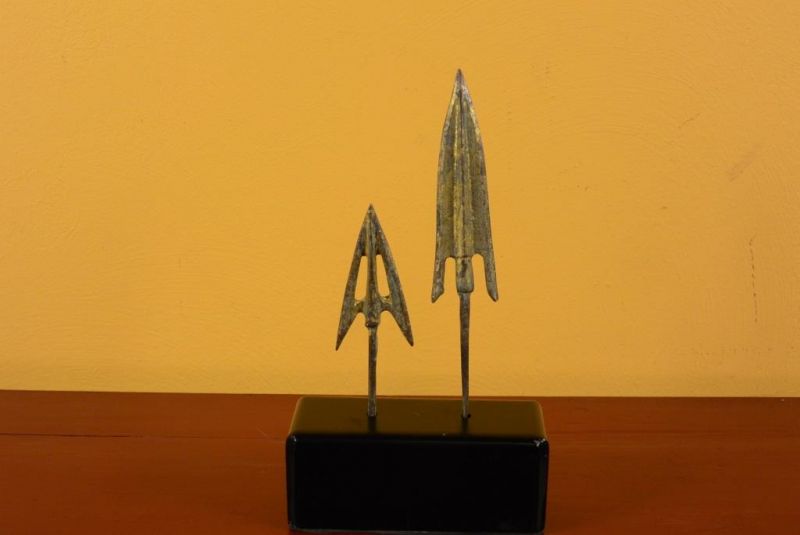 - Lot de deux pointes de flèche sur un socle en métal noir;