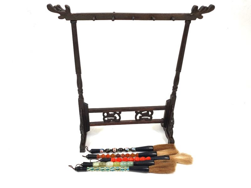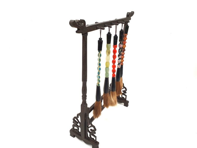 5 Pinceaux avec un Porte pinceaux en bois chinois