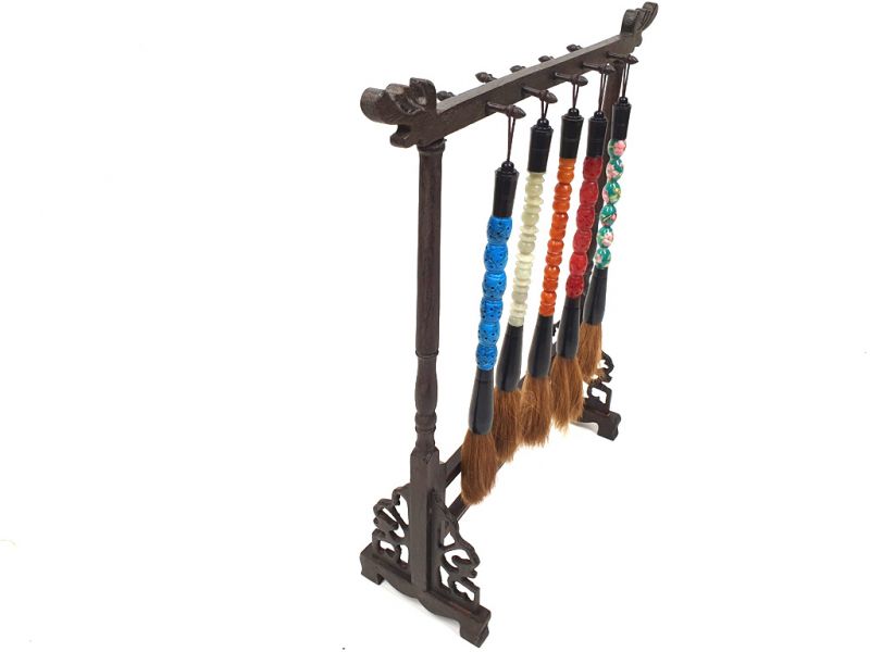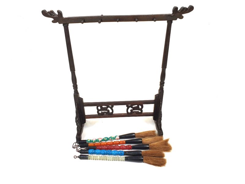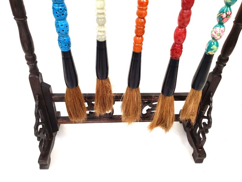 5 Pinceaux avec un Support pinceaux en bois chinois
