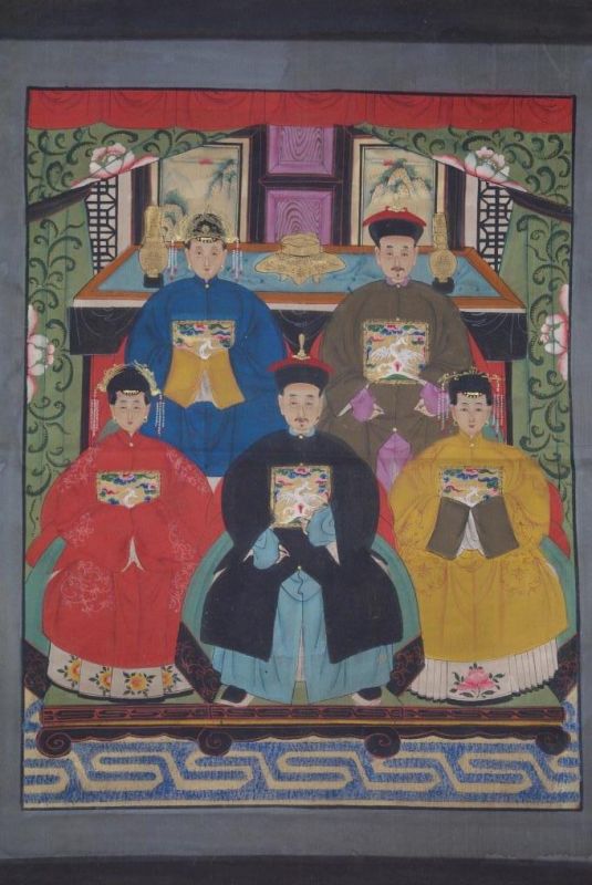 - Ces portraits peuvent représenter plusieurs générations en vue frontale, un clan, un couple ou une personne seule. Les Chinois disposent ces toiles dans un endroit dédié de leur maison, et parfois ils réservent une pièce entière au culte de leurs ancêtres.