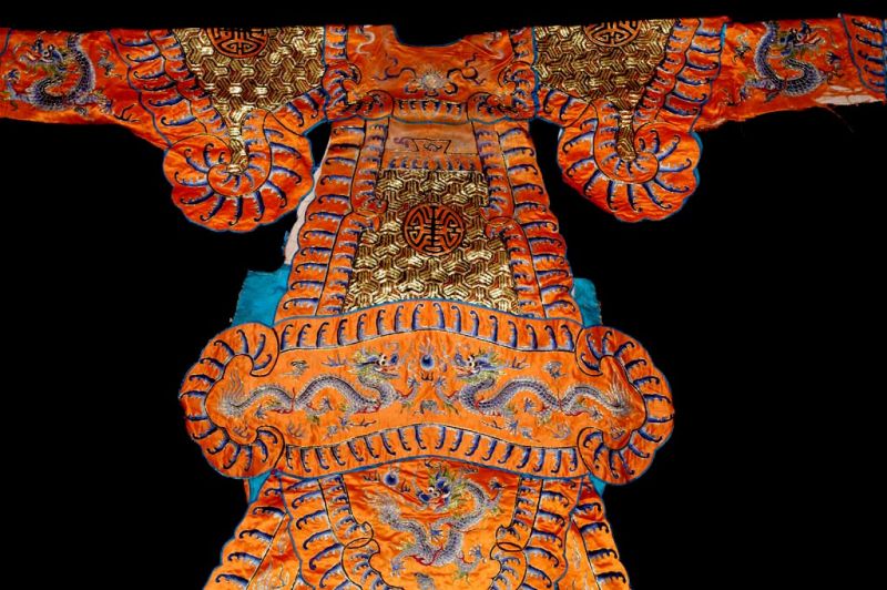Costumes de l'Opéra de Pékin: Ils sont sans doute les plus connus, avec des manches longues appelées water sleeves (manches d'eau) utilisées pour accentuer les mouvements gracieux des acteurs. (Comme sur cette annonce)