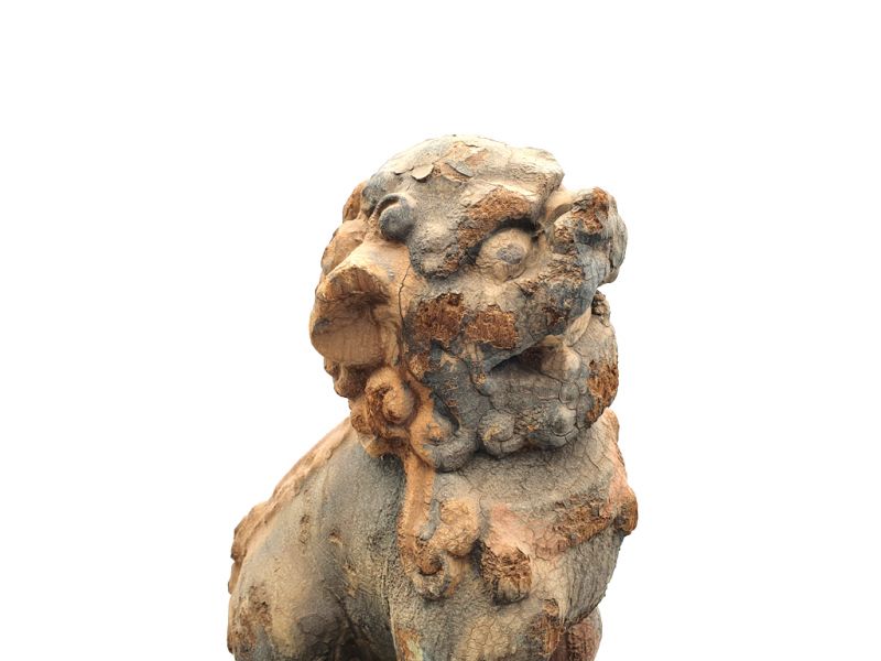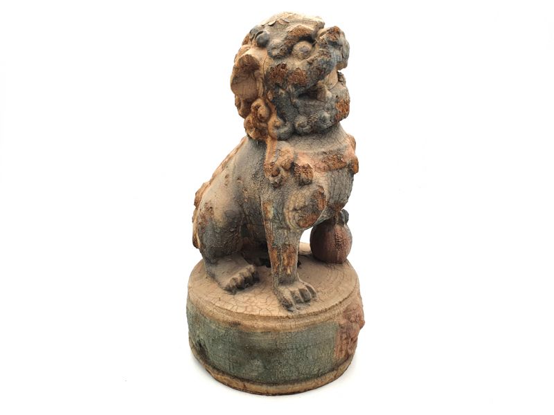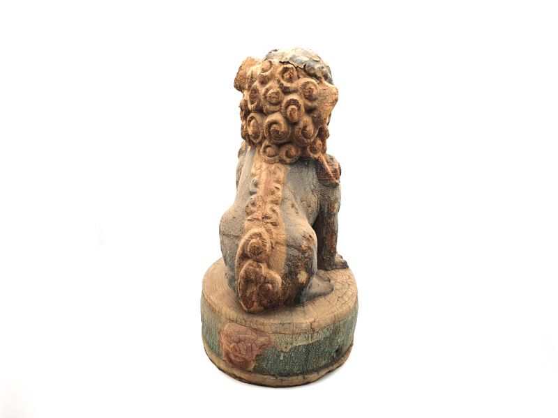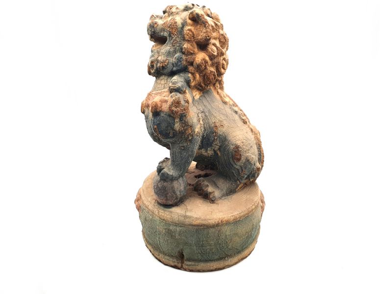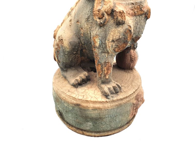 Ancien grand lion gardien de temple en Bois (âge: 50ans)