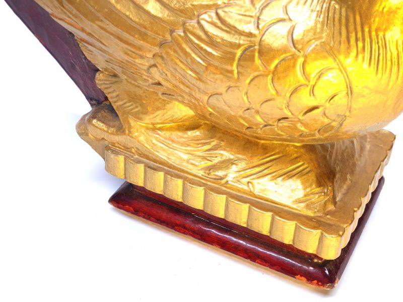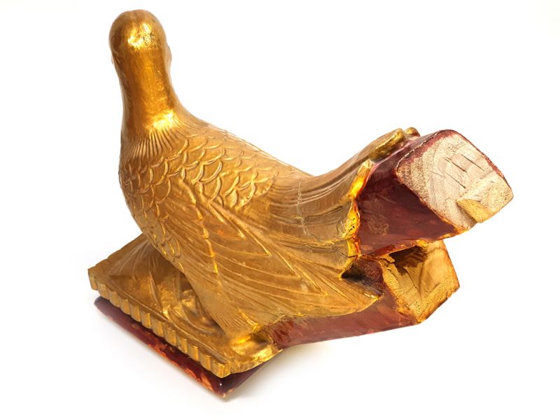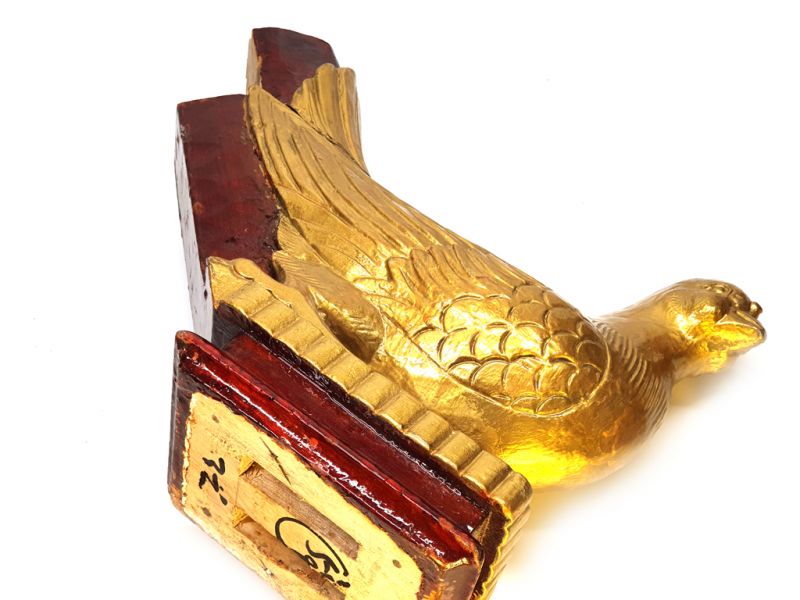 - Ancien oiseau protecteur en bois. Il remplace ici le Chien Fu ou le lion chinois en Bois, animaux protecteurs selon la Loi de Bouddha.