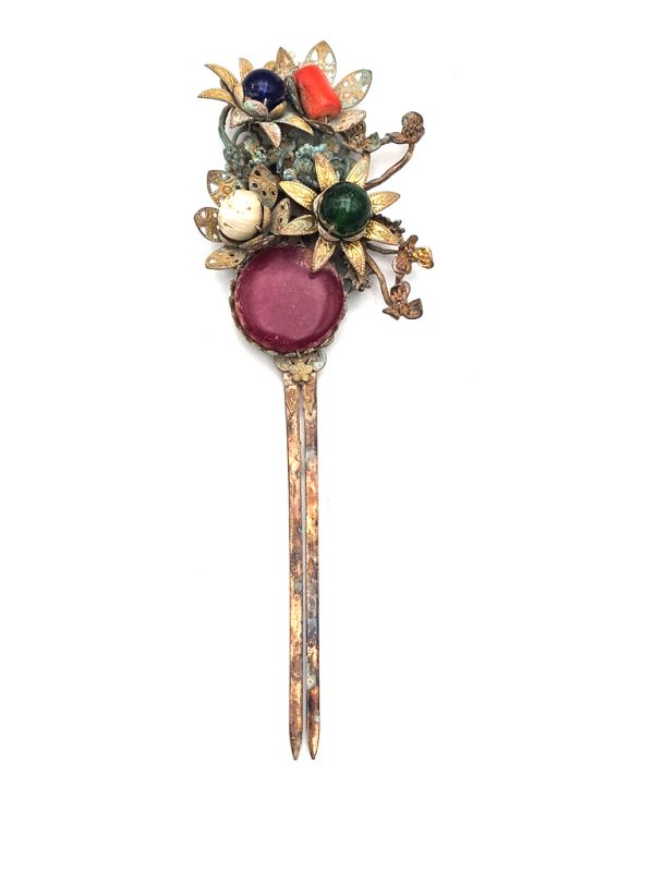 - Ici nous avons un ancien pic à cheveux provenant d'un costume ancien. Par la variété des couleurs et par la richesse des ornements, ce pic à cheveux joue un rôle très important aux yeux du public.