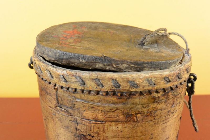 Ancienne boite de transport chinoise - Pique-nique - Bois et cuir