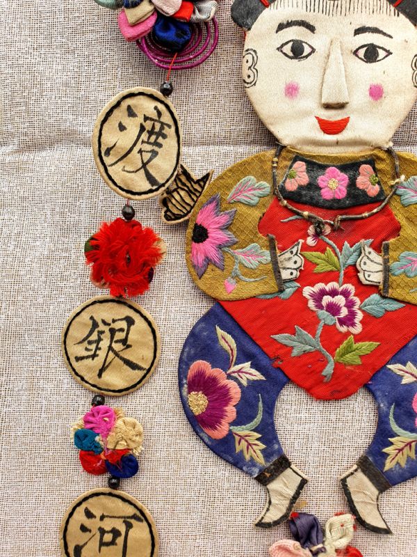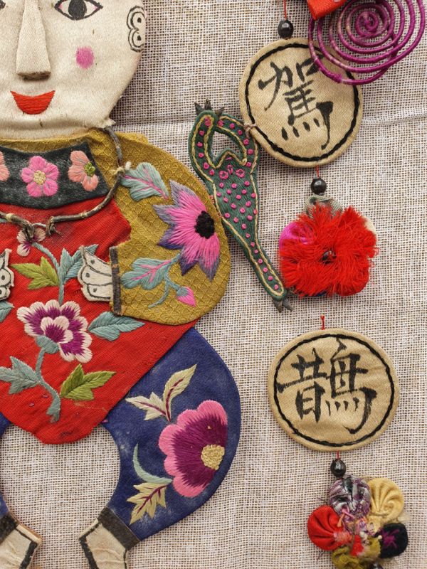 - Ancienne broderie chinoise de la province du ShanXi que l'on offrait aux enfants à leur naissance afin de leur porter chance.