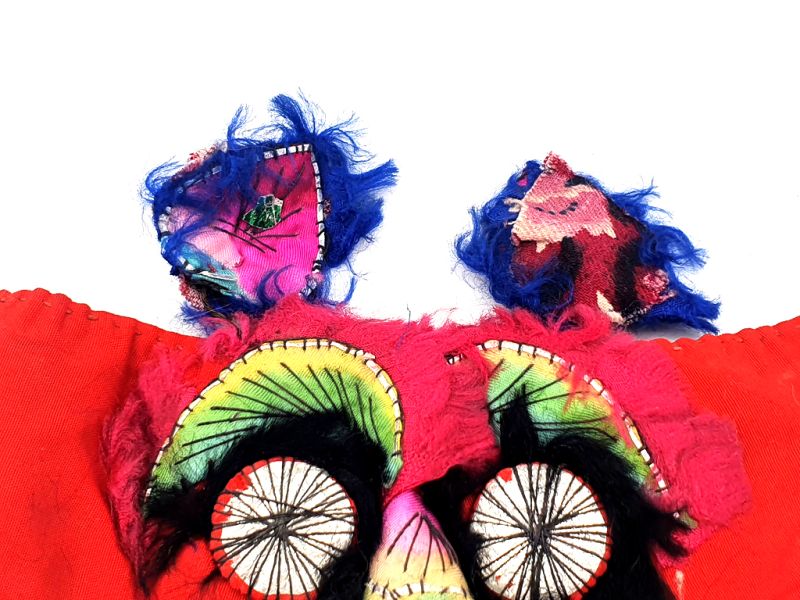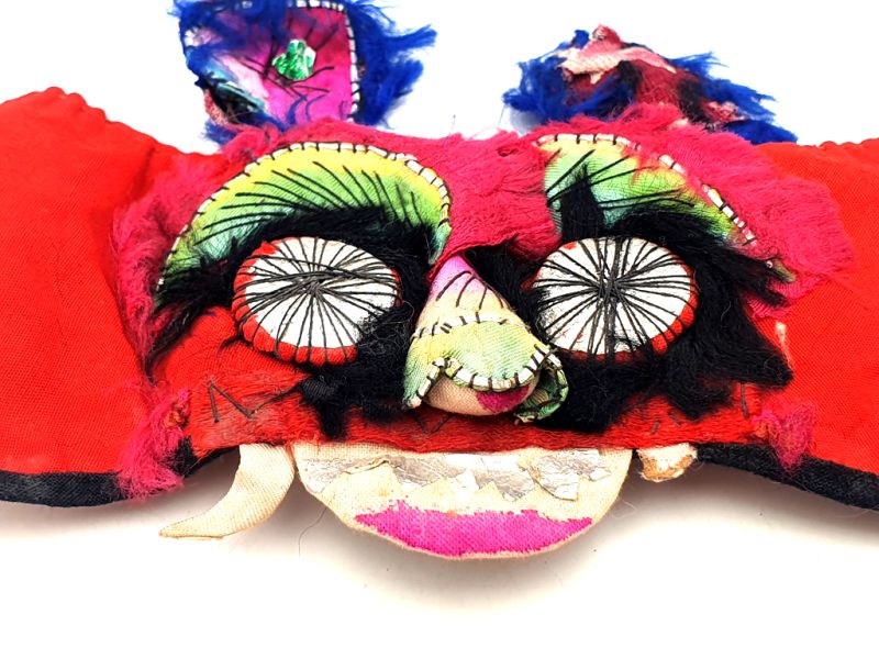 Ancienne Coiffe Ethnique de Bébé - Tête de tigre - Rouge