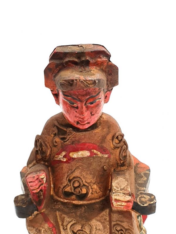 Ancienne reproduction d'une statue votive chinoise - Statue en bois de Chine - Dynastie Qing