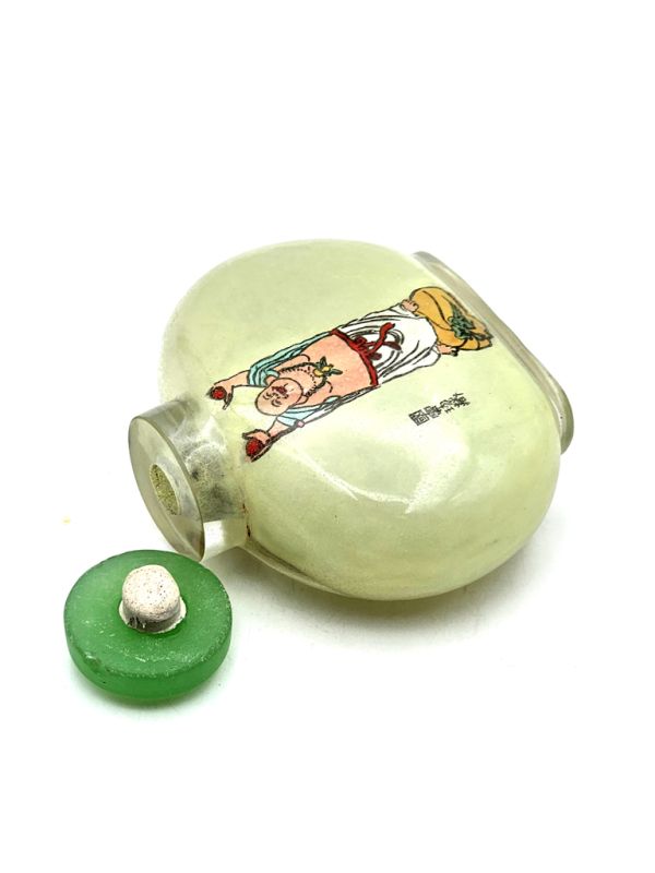 Ancienne tabatière Chinoise en Verre - Bouddha Rieur