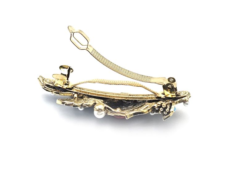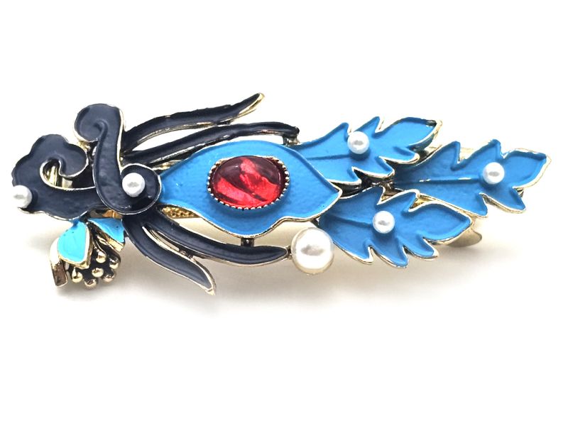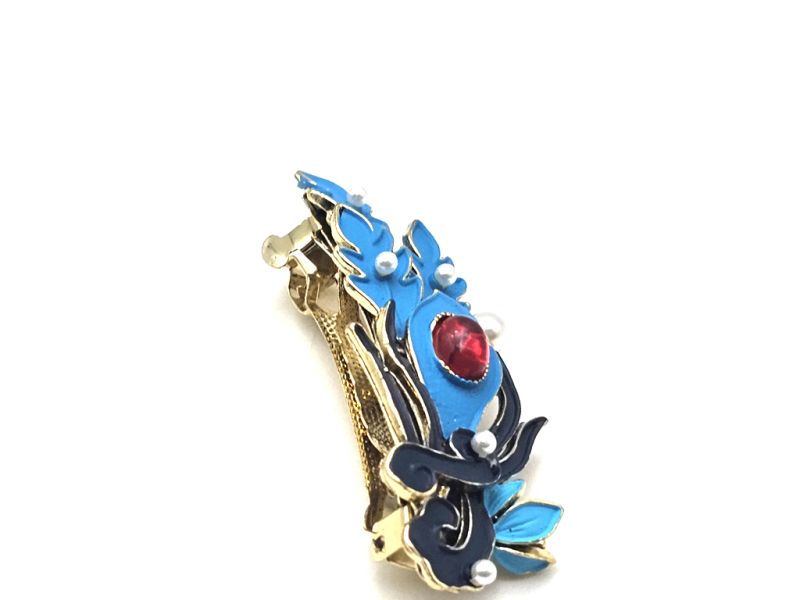 Le cloisonné, une technique remontant à la dynastie Ming, consiste à créer des motifs délicats à l’aide de fils métalliques fins, remplis ensuite d’émaux colorés. Chaque barette est minutieusement travaillée, révélant des motifs floraux, des arabesques délicates ou des symboles porte-bonheur emblématiques de la culture chinoise.