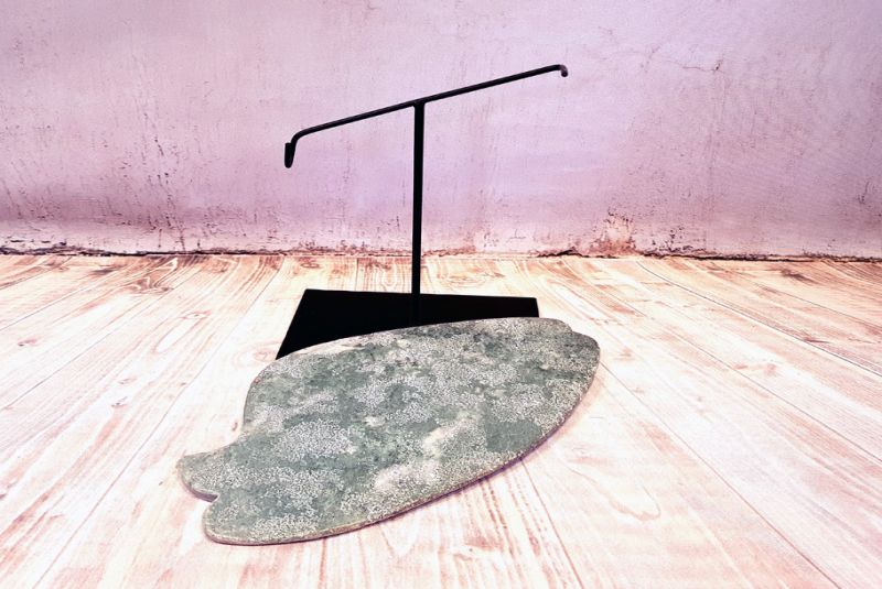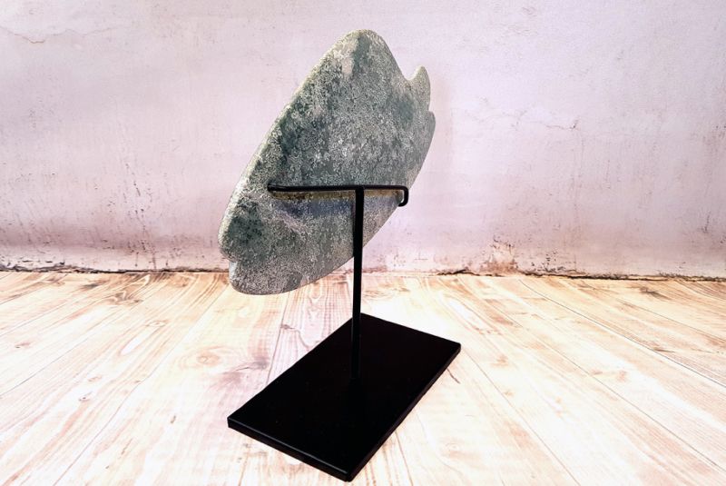 - La pierre dans laquelle cet objet sculpté est appelée pierre naturelle de Lushan, également appelée en Asie "jade de montagne". Il ne s’agit, en réalité, pas de jade néphrite ou jadéite mais d’une pierre de marbre dolomitique opaque qui, néanmoins, a l’apparence de jade de type néphrite. Cette pierre est richement composée de calcium et de magnésium.