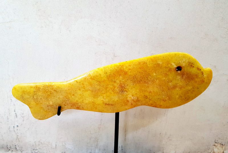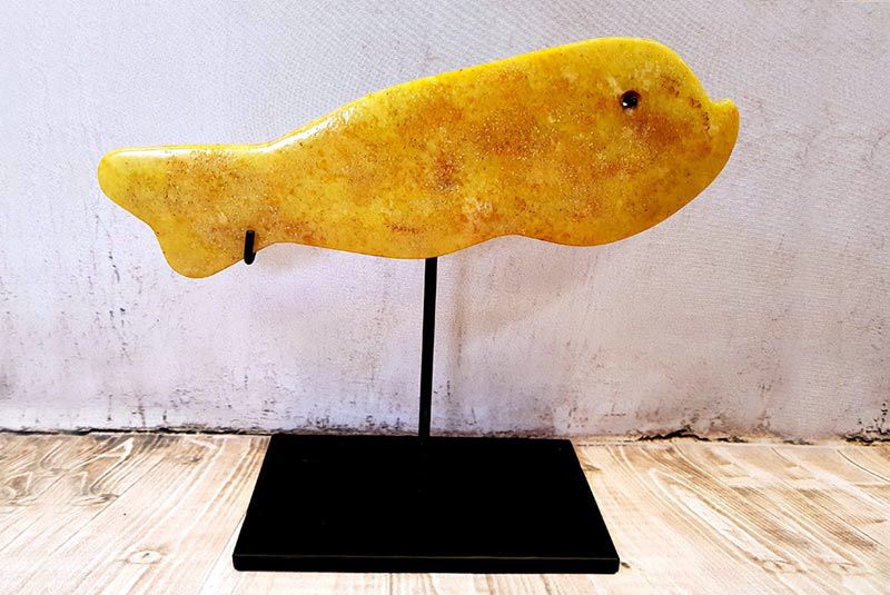 - Le Poisson Bi en photo ci dessus est vendu avec son support en métal (la taille indiquée, est celle du Poisson sans le support). De nos jours, de plus en plus de particuliers chinois et occidentaux les utilisent comme objets de décoration afin de donner une touche de spiritualité et de mystère à leur intérieur.
