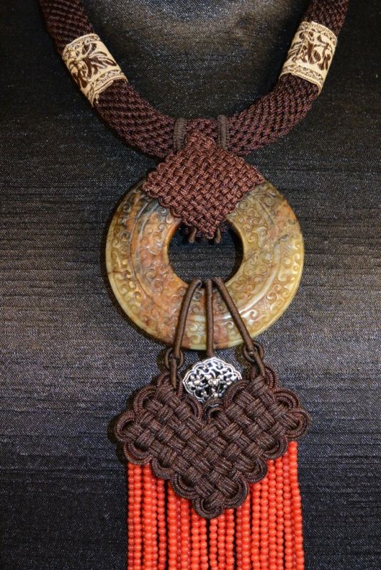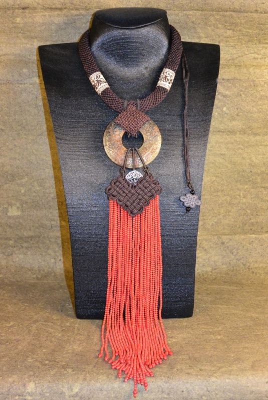 Bijoux de Création Ethnique - Ancien Jade et Corail Rouge