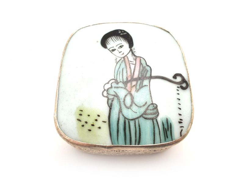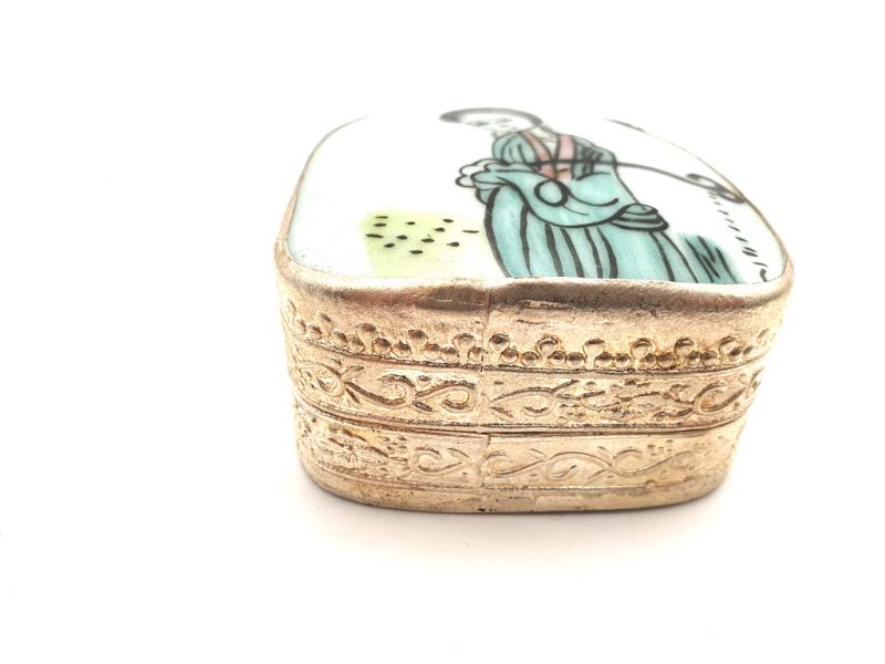 Boite Asiatique - Métal et Porcelaine - Dame de cour