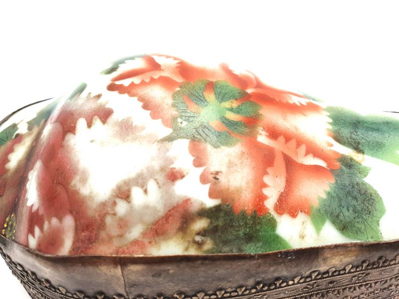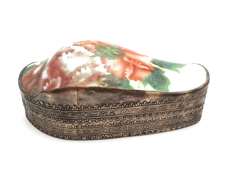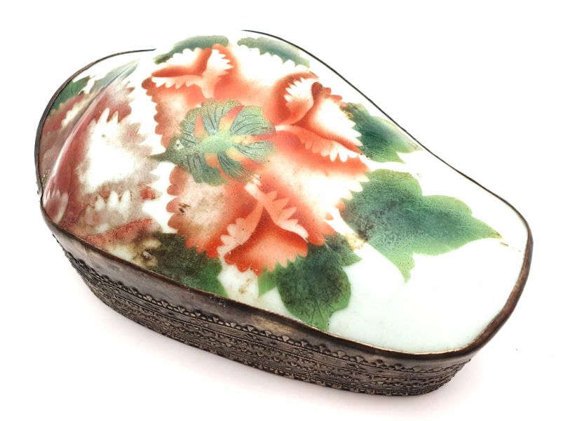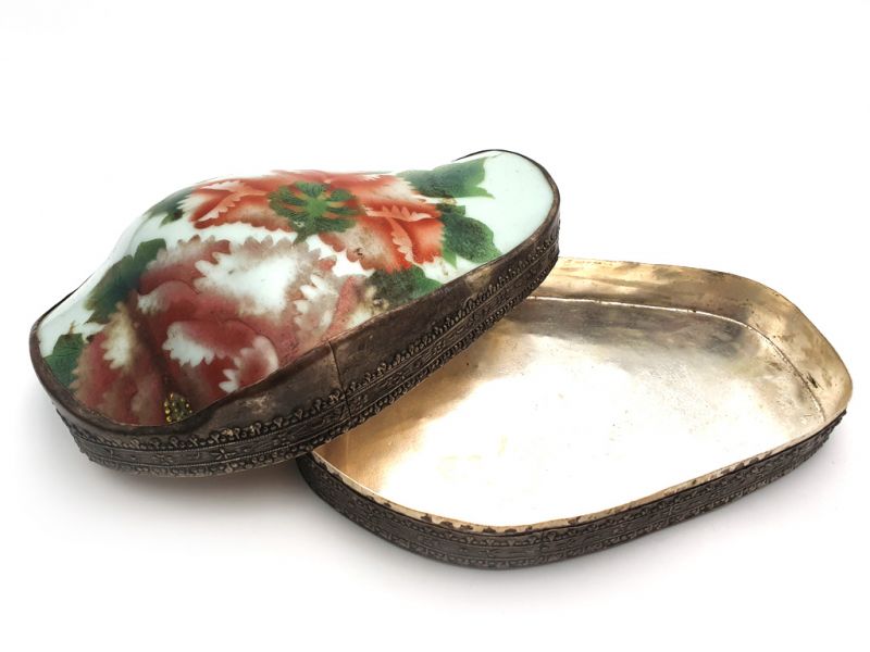 Boite Asiatique - Métal et Porcelaine - Fleur