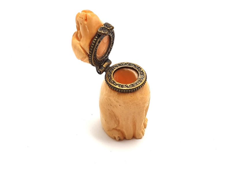 - Cette Boite est en OS (Os de Buffle) et est entièrement gravée, taillée et peinte à la main.