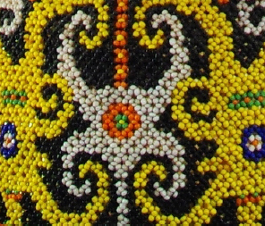 Le terme Dayak est un terme qui désigne les différents peuples de l'intérieur des îles indonésiennes, malaisiennes et d'Asie du Sud-Est. Ici il s'agit d'une coiffe provenant de la tribu Dayak Kenyah de Bornéo. Les Dayaks de Bornéo sont connus par l'une de leurs coutumes: La chasse aux têtes, cette chasse est centré sur la notion de tête-trophée. Celle-ci peut être obtenue de diverses façons: Lors d'un combat, par sacrifice et cela dans un but de vengeance (cas le plus fréquent) ou pour assouvir une volonté de puissance.