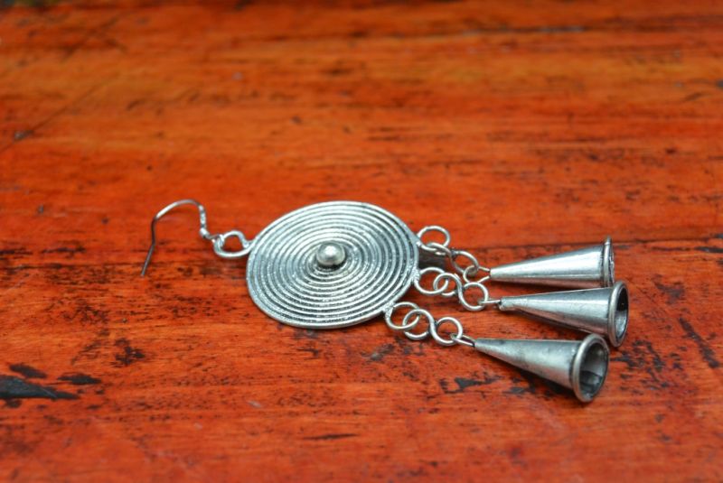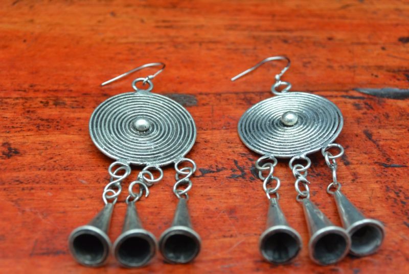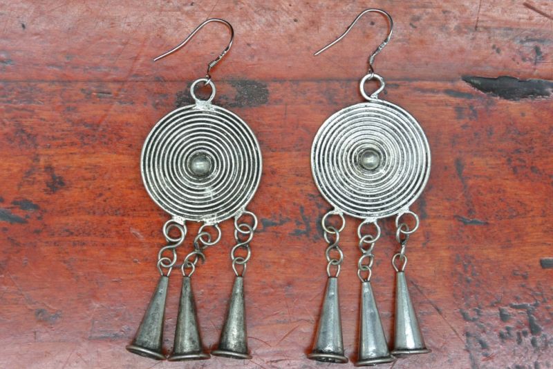 - Ce bijou est une paire de boucles d'oreilles de la minorité Miao montées sur deux attaches en argent 925. Ce type de boucles d'oreilles sont portées dans tout le Triangle d’or, une région montagneuse d’Asie du sud-est aux confins de la Thaïlande, de la Birmanie et du Laos (cette zone comprendrait également une partie du Yunnan chinois et du Vietnam, selon certaines interprétations). Ce sont principalement les membres de l’ethnie Hmong, également appelée ethnie Miao en Chine, qui fabriquent et qui portent ces bijoux. La tribu Miao est réputée pour ses bijoux ethniques et traditionnels qui sont aisément reconnaissables.