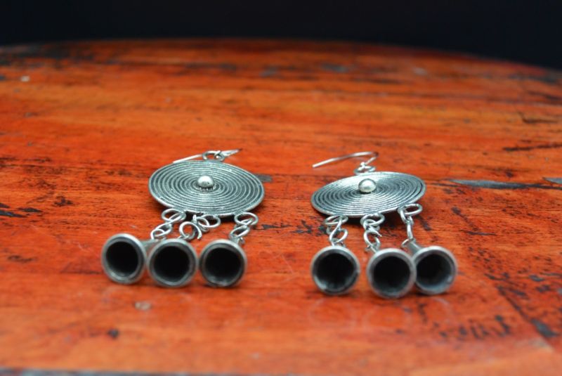 - Composition de nos boucles d'oreilles: cuivre blanc (90 %), argent (moins de 10 %), ainsi que divers métaux. (l'attache est en argent 925). Traditionnellement, ces bijoux sont fabriqués à la main et les orfèvres Miao fondent eux-mêmes l’argent et les divers métaux de façon artisanale. L’argent étant un élément cher pour les minorités chinoises, le pourcentage d’argent peut varier considérablement selon chaque pièce, ce qui explique les variations de prix et de qualité. Ces bijoux ethniques sont destinés aux femmes de la tribu qui les portent pour les grands événements comme les mariages et les cérémonies religieuses. Lors de ces célébrations, certaines femmes peuvent porter jusqu’à 15 kg de bijoux, afin d’indiquer le rang de sa famille dans la hiérarchie Miao.