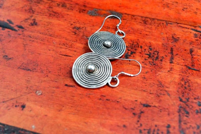 - Composition de nos boucles d'oreilles: cuivre blanc (90 %), argent (moins de 10 %), ainsi que divers métaux. (l'attache est en argent 925). Traditionnellement, ces bijoux sont fabriqués à la main et les orfèvres Miao fondent eux-mêmes l’argent et les divers métaux de façon artisanale. L’argent étant un élément cher pour les minorités chinoises, le pourcentage d’argent peut varier considérablement selon chaque pièce, ce qui explique les variations de prix et de qualité. Ces bijoux ethniques sont destinés aux femmes de la tribu qui les portent pour les grands événements comme les mariages et les cérémonies religieuses. Lors de ces célébrations, certaines femmes peuvent porter jusqu’à 15 kg de bijoux, afin d’indiquer le rang de sa famille dans la hiérarchie Miao.