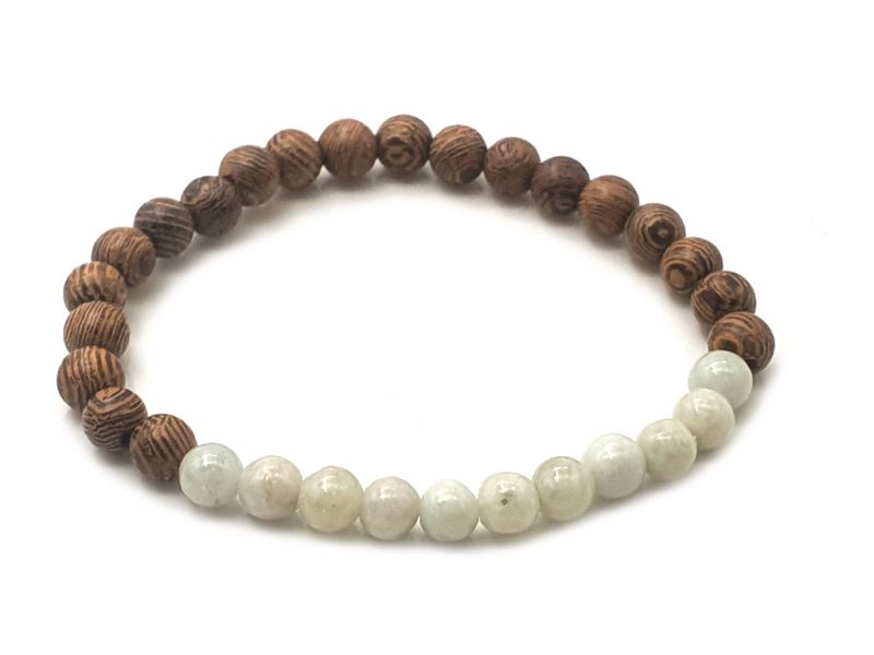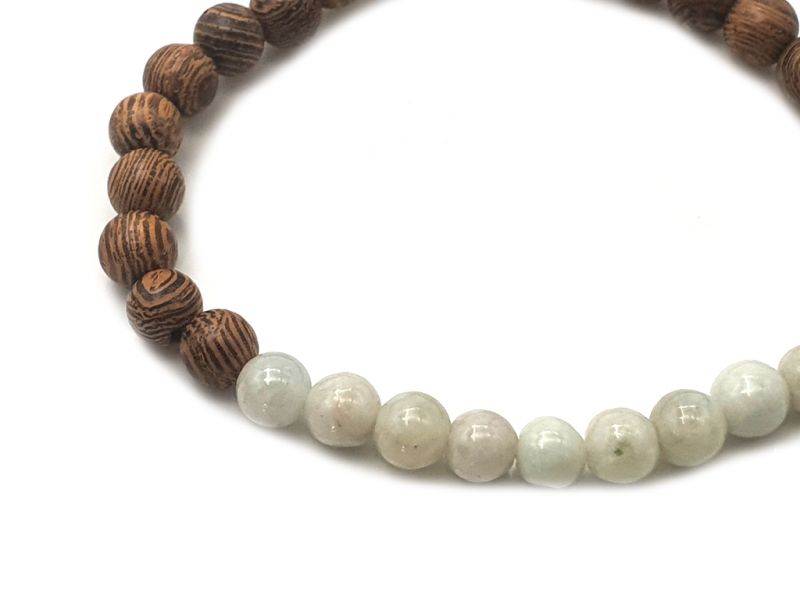 Bracelet en Jade et Bois - 6mm - Palissandre d'Afrique et jade clair