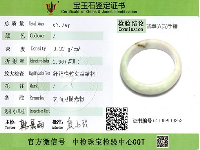 La certification de notre Jade :