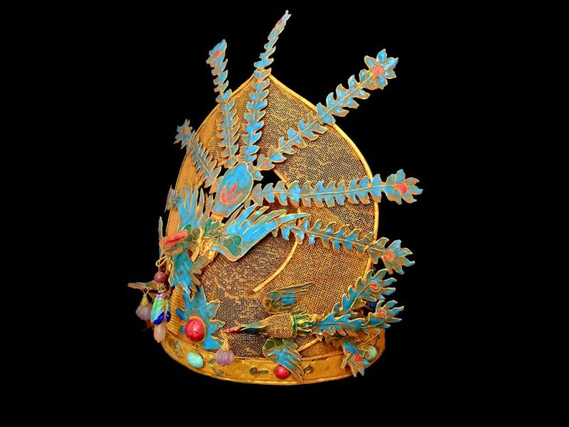 Coiffe Théâtrale de l’Impératrice Qing aux Plumes de Phénix et Émaux Turquoises