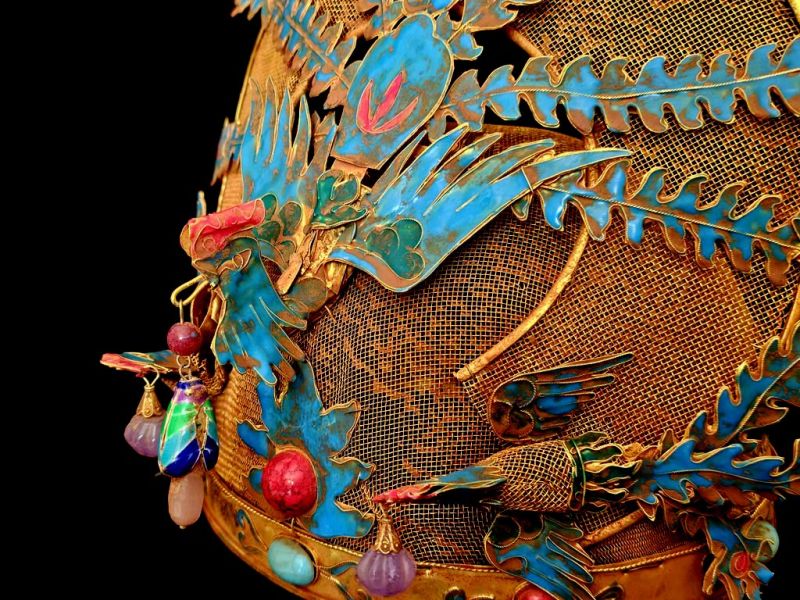- il y a également de nombreuses parties de cette coiffe en cloisonnées.