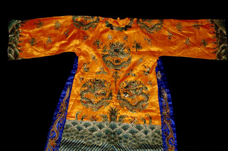 Costumes de l'Opéra de Pékin: Ils sont sans doute les plus connus, avec des manches longues appelées water sleeves (manches d'eau) utilisées pour accentuer les mouvements gracieux des acteurs. (Comme sur cette annonce)