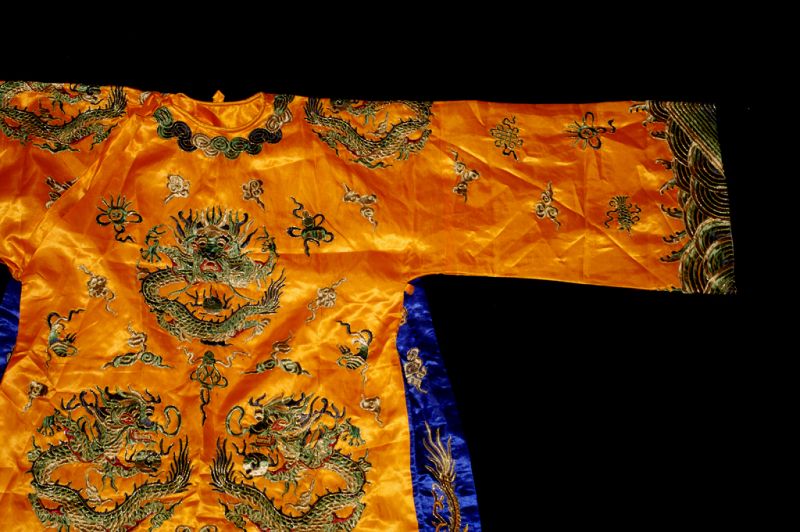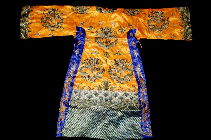 Les costumes traditionnels du théâtre chinois, avec leurs couleurs éclatantes, leurs motifs détaillés et leurs accessoires raffinés, représentent bien plus que de simples vêtements. Ils incarnent des siècles d’histoire, de culture et de spiritualité, et jouent un rôle essentiel dans les performances théâtrales, notamment dans des genres emblématiques tels que l’Opéra de Pékin. Ici nous avons un costume ancien composé de soie et de broderie (environ 10 ans). Par la variété des couleurs et par la richesse des ornements, ce genre de costume joue un rôle très important aux yeux du public.
