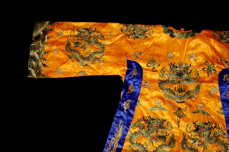 Les motifs: Les motifs brodés, souvent réalisés à la main, incluent des dragons, des phénix, des fleurs et d’autres symboles issus de la mythologie et du folklore chinois. Ces éléments renforcent le statut ou les traits de caractère du personnage.
