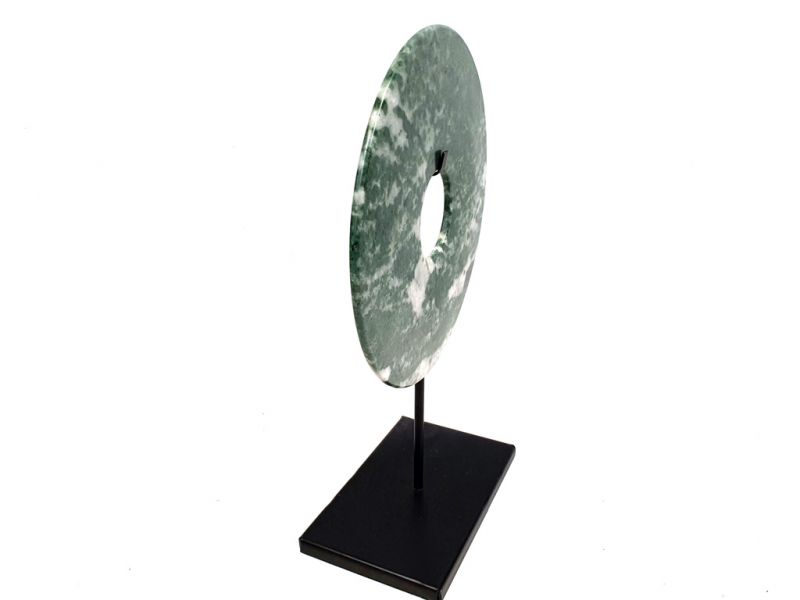 - Le disque Bi en photo ci desss est vendu avec son support en métal. De nos jours, de plus en plus de particuliers chinois et occidentaux les utilisent comme objets de décoration afin de donner une touche de spiritualité et de mystère à leur intérieur.