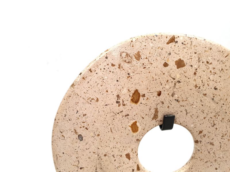 - Il représente le symbole de l’Univers céleste qui est comme lui rond et infini. C’est un artéfact en pierre de type marbre dolomitique opaque également appelé en Asie "Jade de montagne", Ce disque est de couleur naturelle. Il existe de nombreux gisements de Jade de montagne en Chine et cette pierre est utilisée depuis la Préhistoire par les Chinois dans la confection d’objets rituels, d’outils, d’objets artistiques et de potions médicinales.