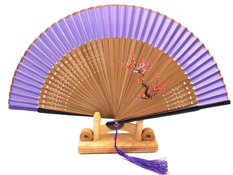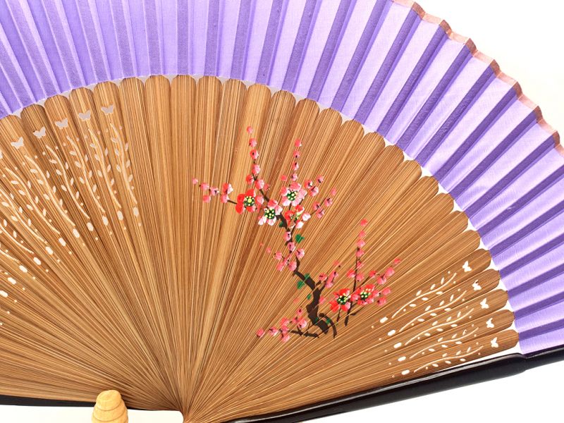 Éventail Asiatique - Peint à la main - Fleurs de cerisier - Violet