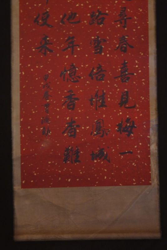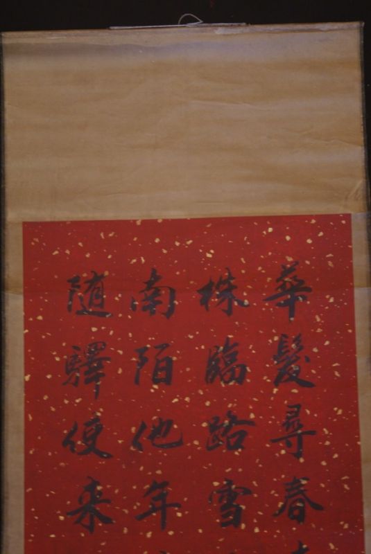 - Ce Kakemono se présente sous la forme d’un rouleau qui est supporté par une baguette de bois à l’extrémité supérieur.
