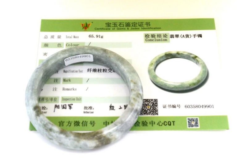 Bracelet en Jade Type A - Avec Certificat - 5,9cm - Vert tacheté