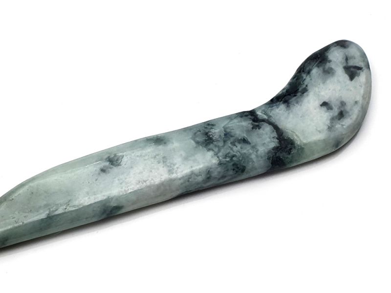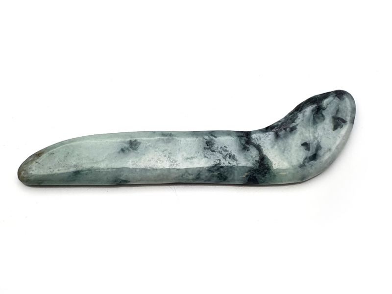 - Bâton Gua Sha en Jade "type Jadéite" de type A. Ce GuaSha est taillé dans une pierre de très bonne qualité.