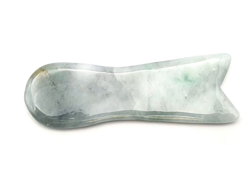 - Gua Sha poisson en Jade "type Jadéite" de type A. Ce GuaSha est taillé dans une pierre de très bonne qualité.
