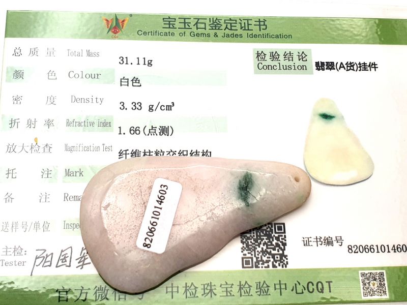 * Le Jade jadéite plus rare s'est développé pendant la Dynastie Ching "Empereur Qianlong". Il s'agit d'un silicate de d'aluminium et de sodium.