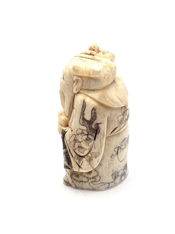 Nos netsuké sont soigneusement fabriqués en Chine par des artisans japonais, respectant les techniques traditionnelles transmises de génération en génération. Chaque pièce est sculptée à la main dans de l'os, garantissant une qualité et une authenticité sans pareil. Les artisans consacrent de nombreuses heures à chaque netsuké, sculptant avec précision les moindres détails pour créer des œuvres d'art uniques.