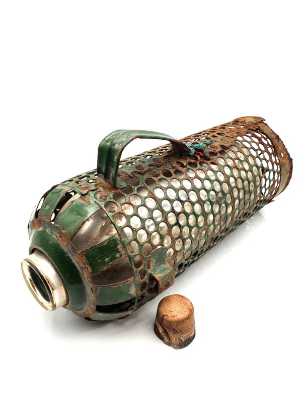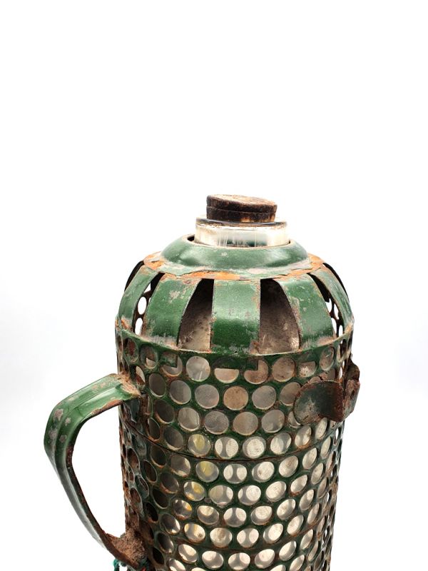 - Nous vendons ici des anciens thermos chinois entourés de métal vert.