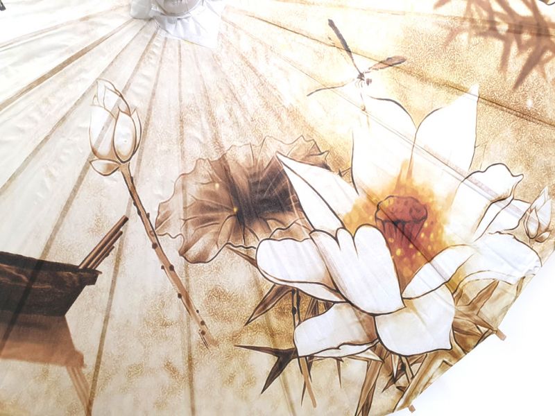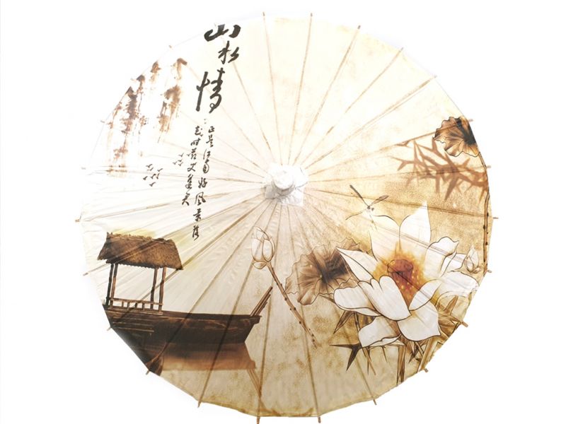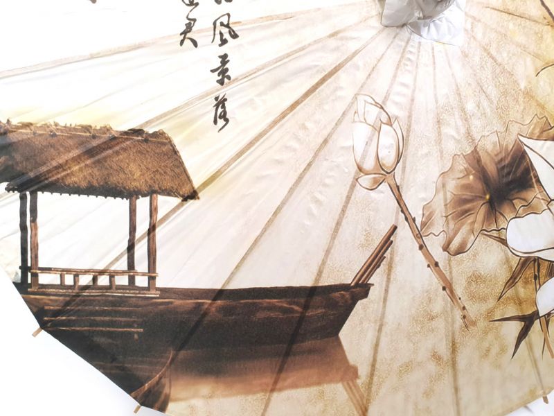 Ombrelle Chinoise en Bois et Papier - Lotus et bateau