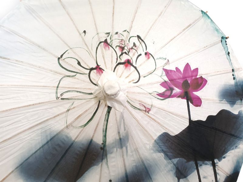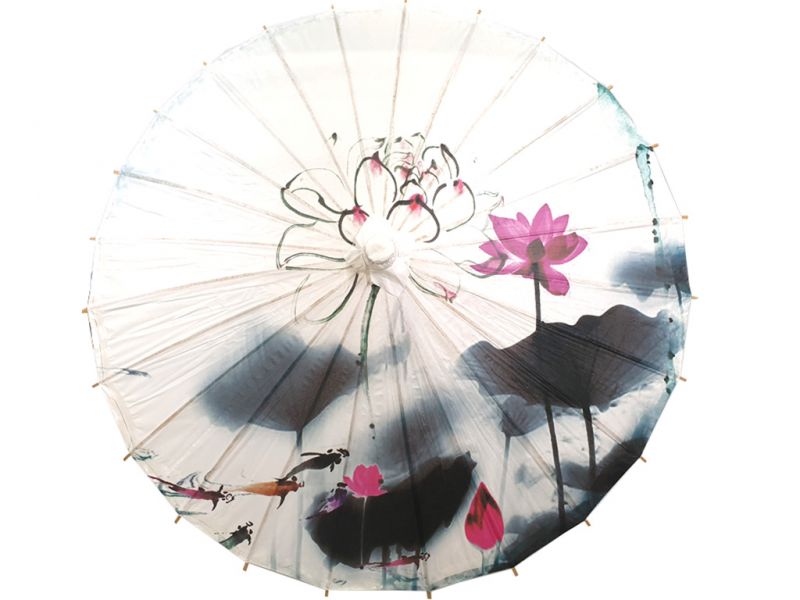 Ombrelle Chinoise en Bois et Papier - Lotus et poissons