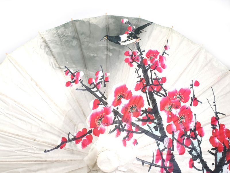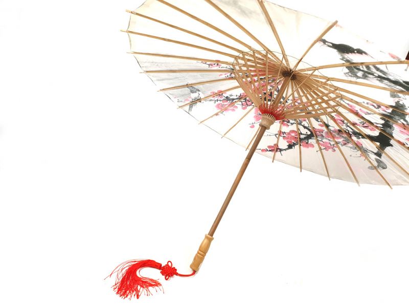 Ombrelle Chinoise en Bois et Papier - Oiseaux sur cerisier