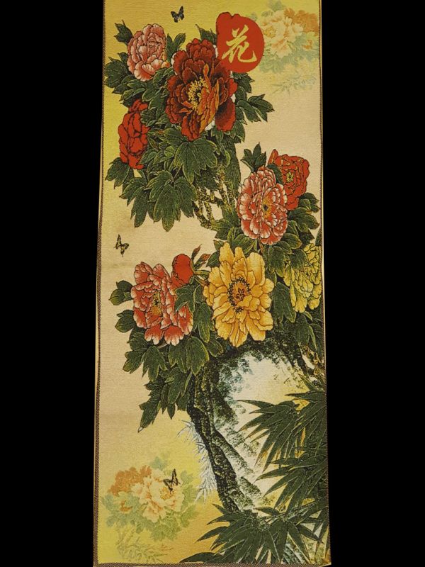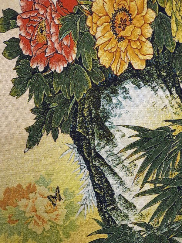 Peinture Chinoise - Broderie sur soie - Paysage - Papillons et fleurs