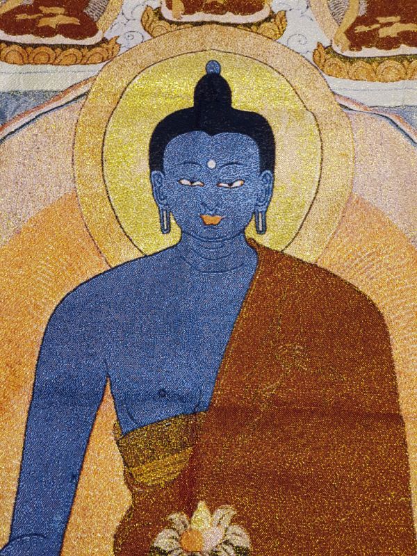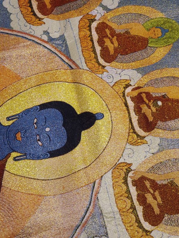 Peinture Chinoise - Broderie sur soie - Thangka - Bouddha Bleu