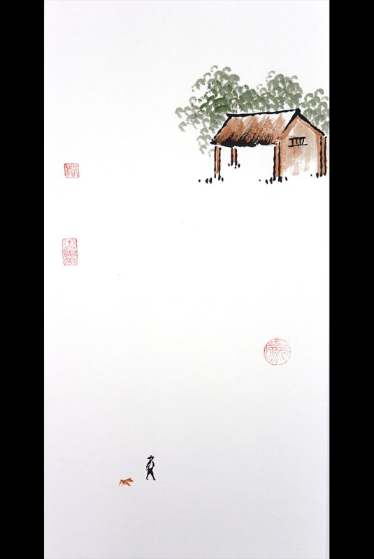 - Aquarelle sur papier de riz réalisée par l’artiste 清雅 « Qīngyǎ » et son fils 易白 « Yìbái ».