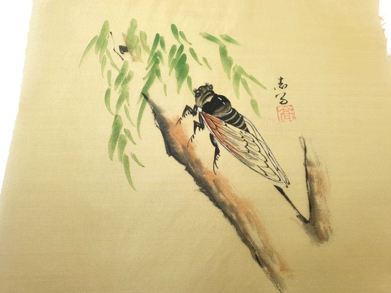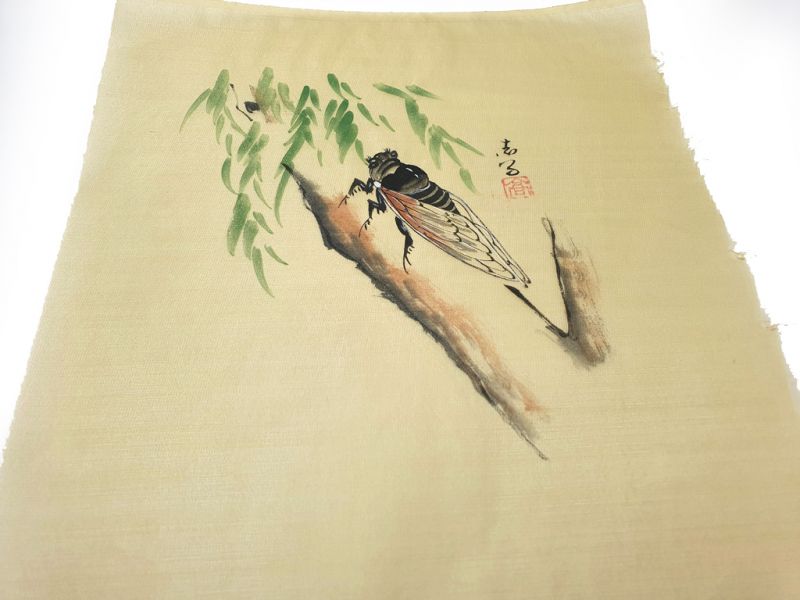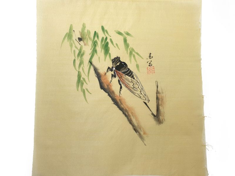 Peinture Chinoise sur soie à Encadrer - L'insecte sur l'arbre