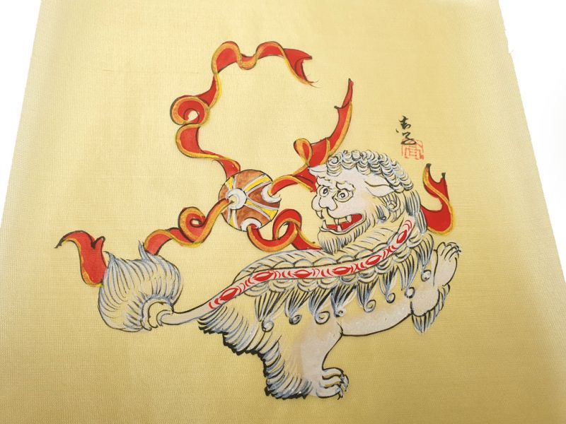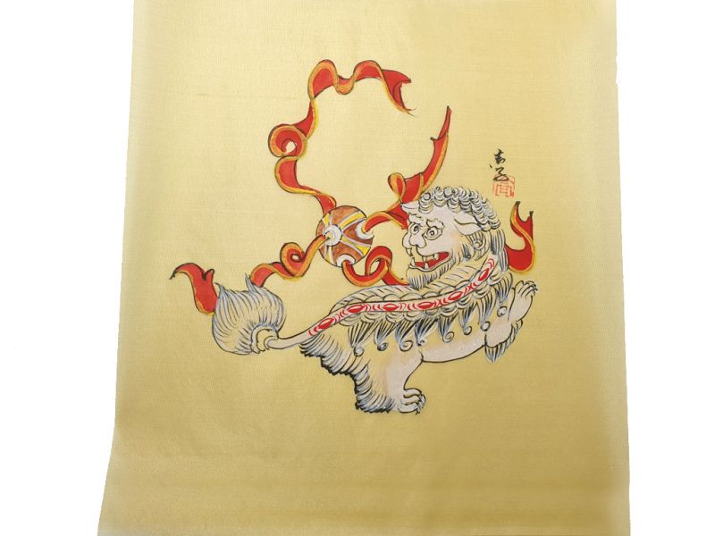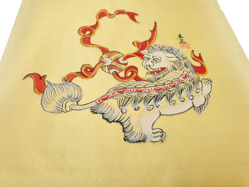Peinture Chinoise sur soie à Encadrer - Le chien Fo