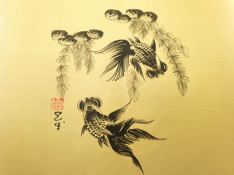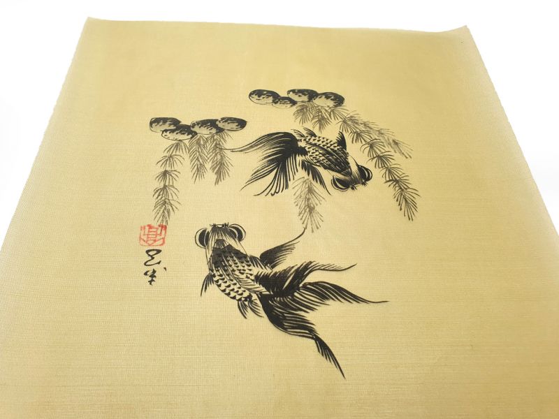 Peinture Chinoise sur soie à Encadrer - Les poissons japonais